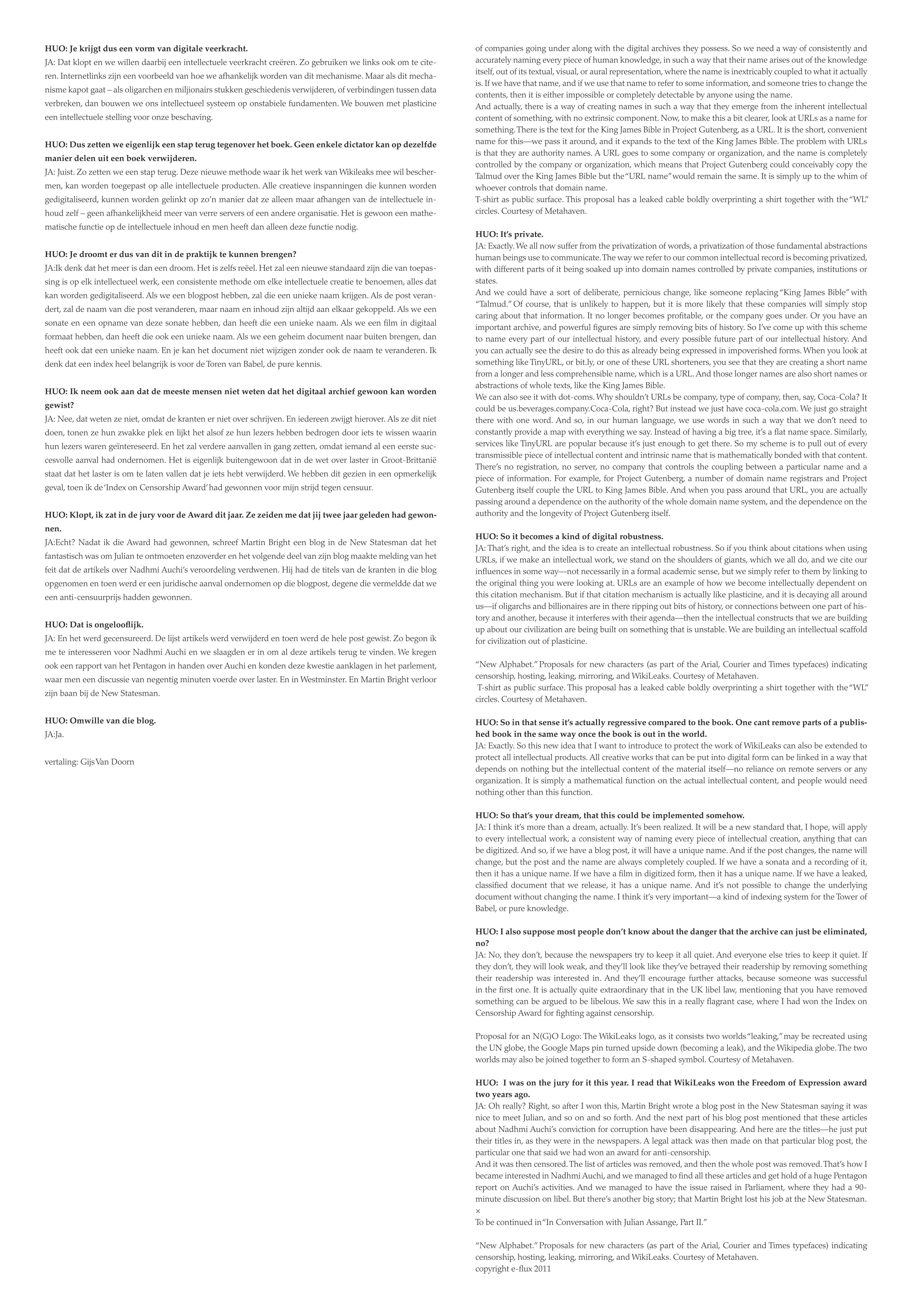 GIJS VAN DOORN VERTAALT: HANS ULRICH OBRIST IN GESPREK MET JULIAN ASSANGE