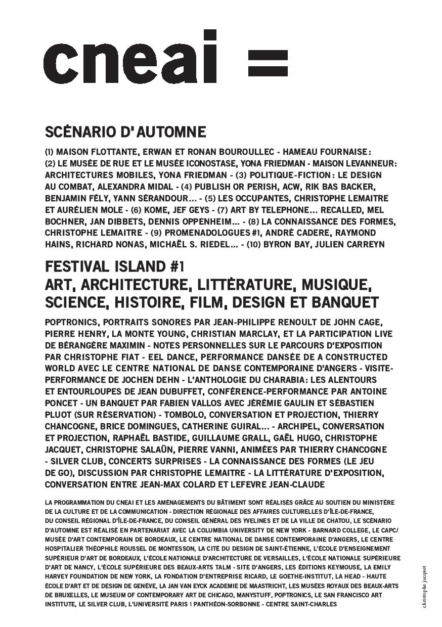 The exhibition ‘KOME’ by Jef Geys will feature in the new national artcentre of Chatou in France: CNEAI. The exposition will run from the 29th of september – 20th of january.